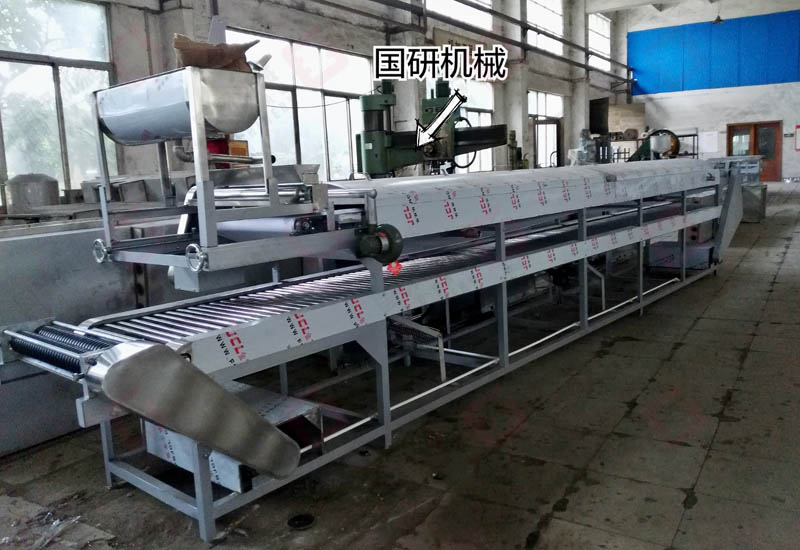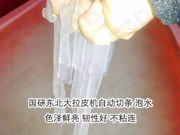 國研牌東北大拉皮機(jī)(粉皮機(jī))采用自動下漿、蒸汽蒸熟,自動淋水分離 ,自動切條、切片(根據(jù)客戶的需要訂制)。生產(chǎn)過程可不需要專人操作,自動化生產(chǎn)。生產(chǎn)的拉皮晶瑩剔透,韌性強(qiáng),口感好,生產(chǎn)效率高。每公斤淀粉可生產(chǎn)拉皮4.5-5.5公斤,該系列產(chǎn)品有多個規(guī)格,適合不同投資規(guī)模的客戶需求,辦食品加工廠,餐飲連鎖店,單位或?qū)W校食堂適用。