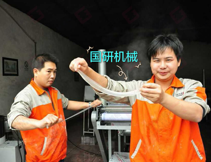5、該機(jī)生產(chǎn)的拉皮、粉皮厚薄可任意調(diào)節(jié),保全了原料的全部營養(yǎng)成份,味道鮮美,清亮剔透。