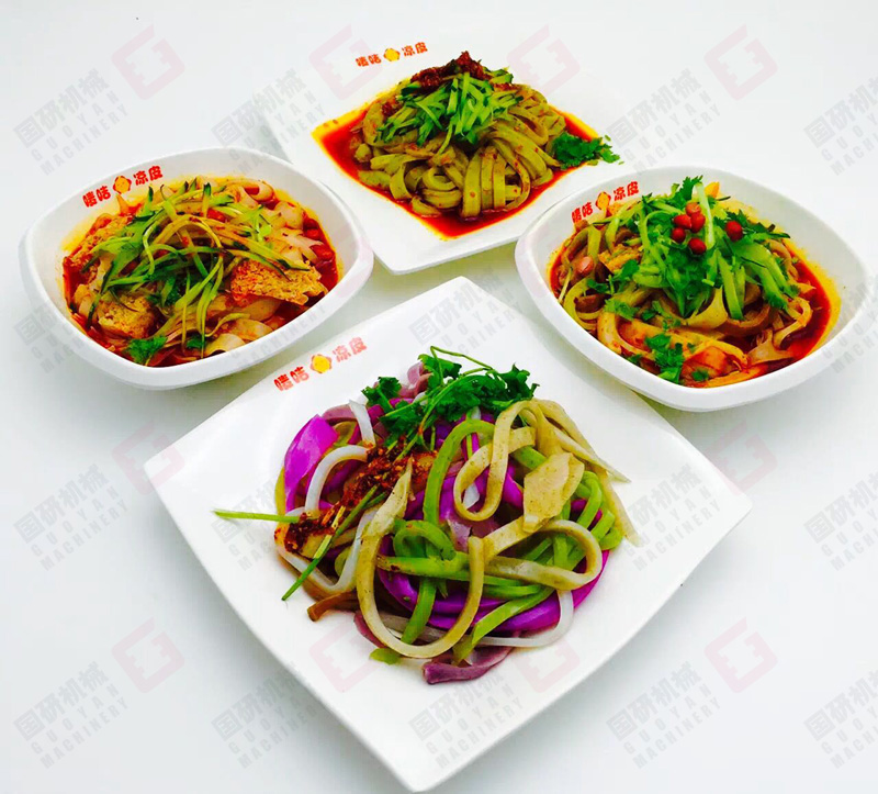 在經(jīng)濟高速發(fā)展和食品越來越多元化的今天,涼皮機如果只能生產(chǎn)涼皮一種產(chǎn)品將難以在市場上立足。國研多功能河粉機可根據(jù)不同的配置(例如可加裝拉腸粉機頭、卷粉機頭、自動切片,自動切條等多種方式)和原料出產(chǎn)不同樣式的產(chǎn)品,可直接倒入面粉打槳就可生產(chǎn)出面皮,釀皮;面粉經(jīng)過洗面后可生產(chǎn)出涼皮和面筋;大米磨槳則可生產(chǎn)河粉、潮汕粿條、江西燙皮、貴州卷筒粉、云南切粉、漢中米皮、綦江米粉、筷子粉等;除此之外還能生產(chǎn)以玉米、紅薯、綠豆等淀粉類粉皮、扁粉、拉皮等等產(chǎn)品。國研多功能河粉機真正實現(xiàn)一機多用,適合不同客戶需求,銷售市場更廣闊!
