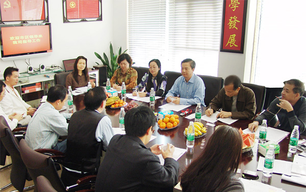 廣州市非公經(jīng)濟(jì)組織創(chuàng)先爭(zhēng)優(yōu)活動(dòng)指導(dǎo)小組在國(guó)研機(jī)械公司調(diào)研(中為廣州市工商局副局長(zhǎng)周邦華)