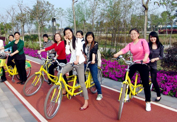 頭頂藍(lán)天白云,腳踏茵茵綠草,身邊是碧水長(zhǎng)堤,目之所及,綠樹(shù)紅花交相輝映。并時(shí)有白墻黑瓦、古色古香的亭臺(tái)樓閣,鋪上琉璃瓦的尖頂,迂回幽靜的廊中榭間,處處彰顯著嶺南水鄉(xiāng)的韻味。女同事們?cè)陉?yáng)光下歡呼雀躍,笑聲被三月的春風(fēng)送得很遠(yuǎn)。各色鮮花帶來(lái)的驚喜,比賽騎車(chē)的刺激,采摘楊桃時(shí)的興奮,聚餐給人的溫馨感覺(jué),讓她們感覺(jué)到了全身心的放松和快樂(lè)。多位女同事不禁感嘆:“和姐妹們聚在一起的感覺(jué)實(shí)在太棒了!公司真給力呀!”