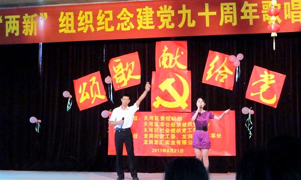 6月21日上午,“頌歌獻(xiàn)給黨”——天河區(qū)“兩新組織”紀(jì)念建黨九十周年歌唱比賽在龍洞街文化站如期舉行。