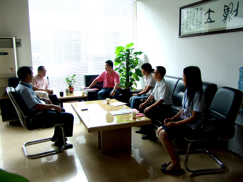 2008年7月17 日,百度(中國)有限公司華南管理委員會總監(jiān)謝方敏先生攜廣州分公司大部總監(jiān)莫莉娜一行來廣州市國研機械設(shè)備制造有限公司訪問,公司總經(jīng)理王聲位,副總經(jīng)理、黨支部書記王聲躍及公司信息部負責(zé)人進行了座談。