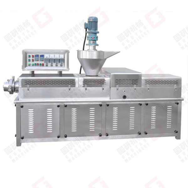 原料(面粉)→加水?dāng)嗬m(xù)攪拌→物料輸送→強制喂料→高溫半膨化擠出→面片冷卻輸送→切條切斷→包裝